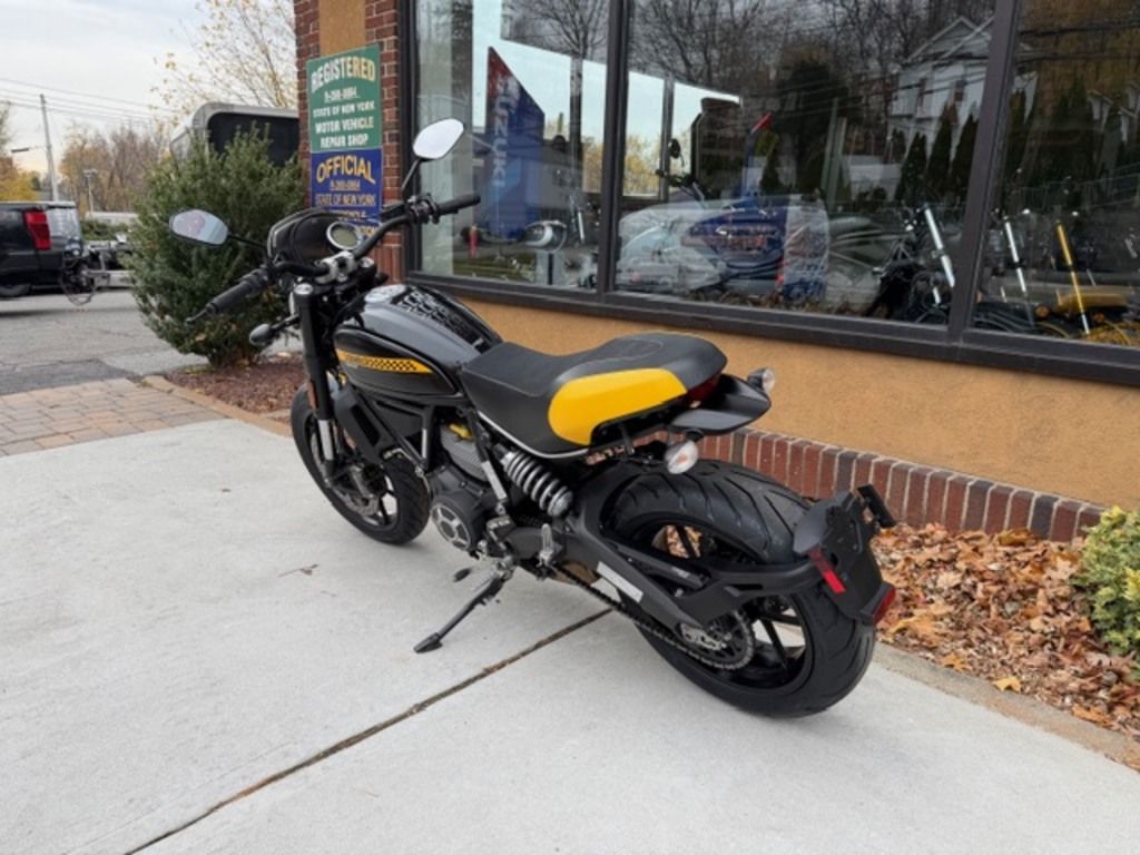 In partnership with Dario Lopez Studio, the black panels are distinguished by the new black chessboard drawn on a yellow band and replicated on the short front mudguard, which together with the Shining Black tank are distinctive features of this new Full Throttle Scrambler.