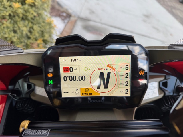The greater effectiveness of the new Panigale V4 R in circuit use is also obtained thanks to the adoption of all the electronic evolutions already introduced on the Panigale V4 '22 and '23, with the expansion and evolution of the Power Modes, new “Track Evo” display on the dashboard, engine maps with calibration dedicated to each single gear, refinements to the Ducati Traction Control and the Ride By Wire system, but also the adoption of the Engine Brake Control EVO 2 strategy, the new strategy for the DQS and the cooling fan control update.